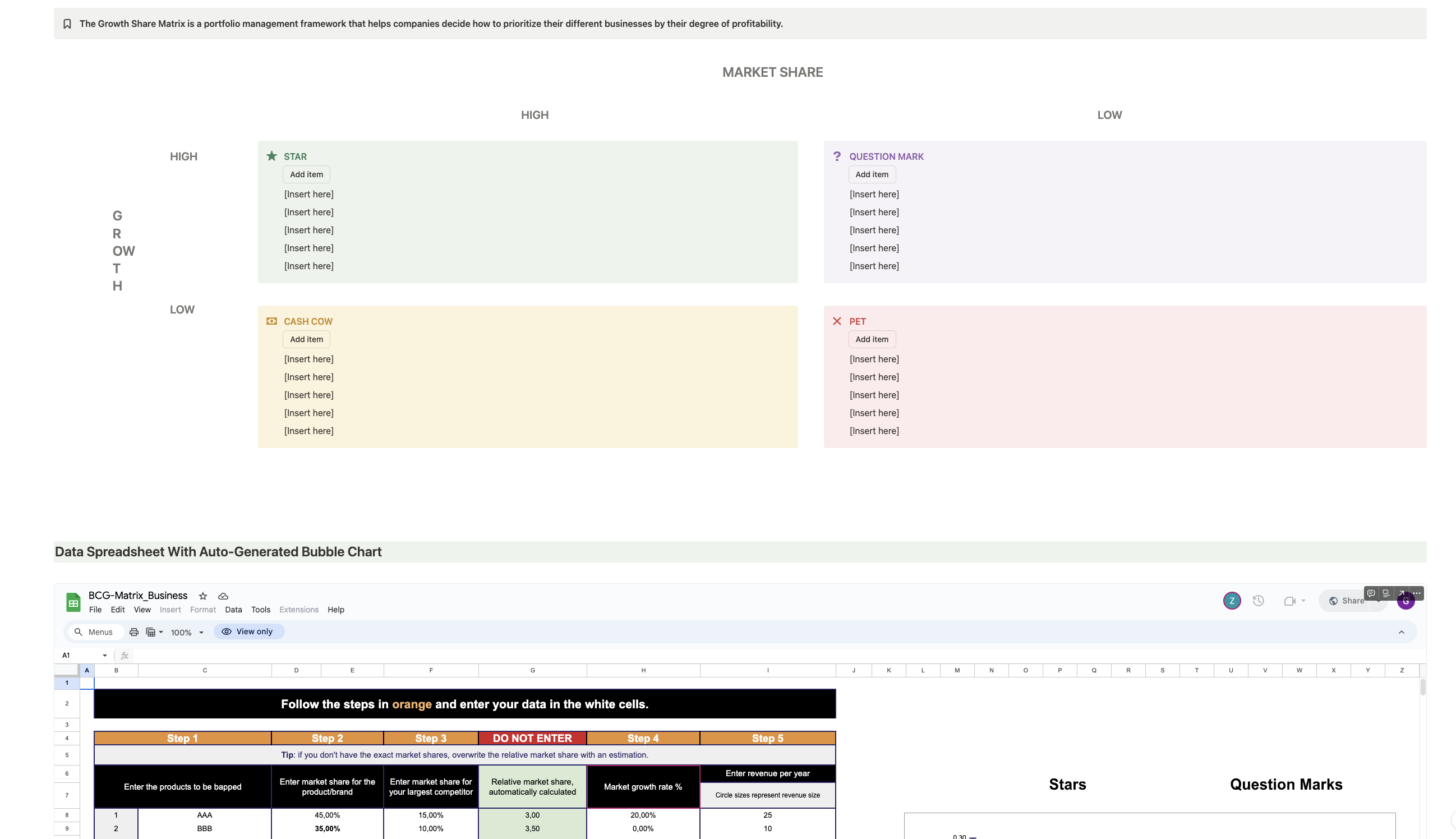 ✔️ Embedded data spreadsheet with auto-generated bubble chart